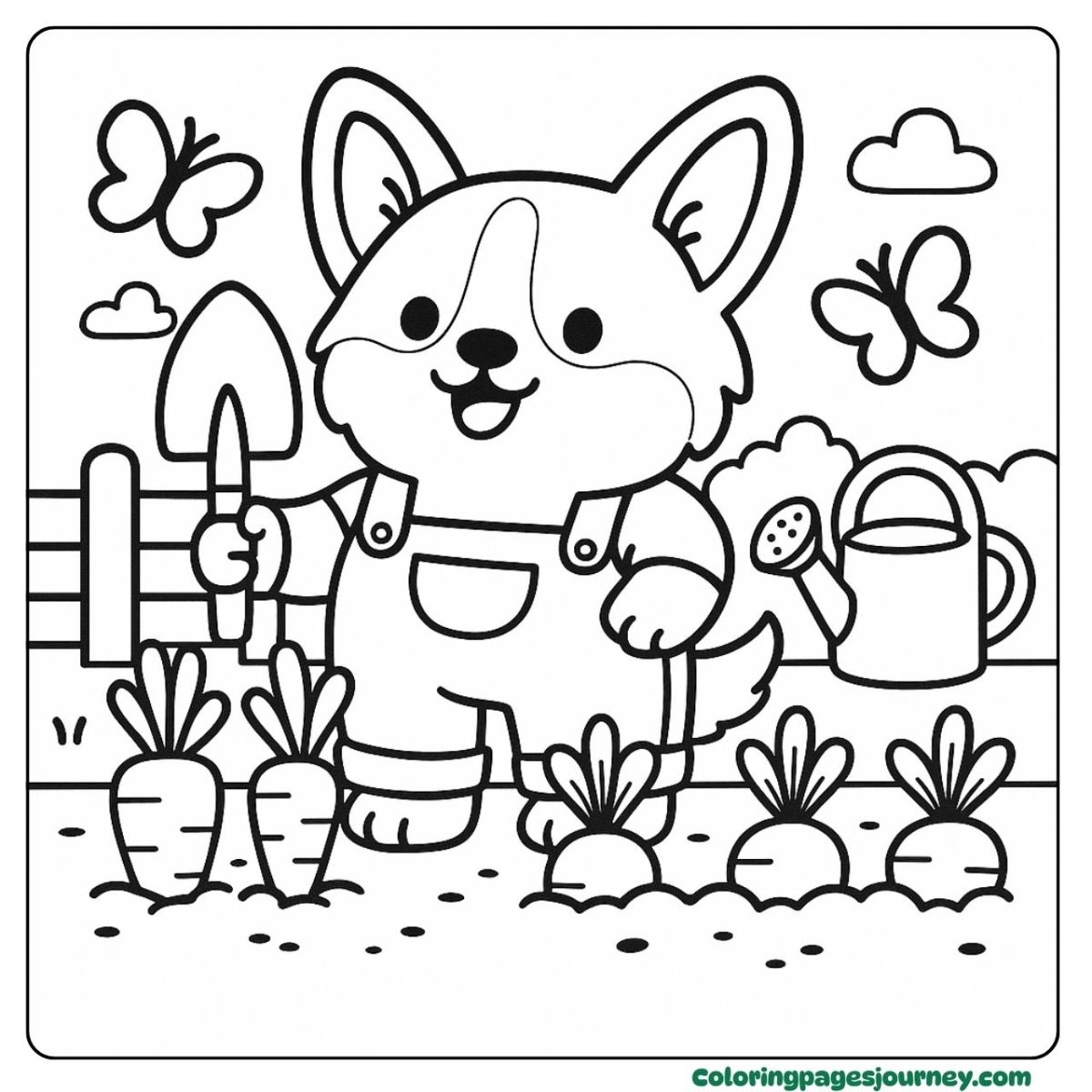 Lively Garden Corgi with Vegetable-Inspired Tones