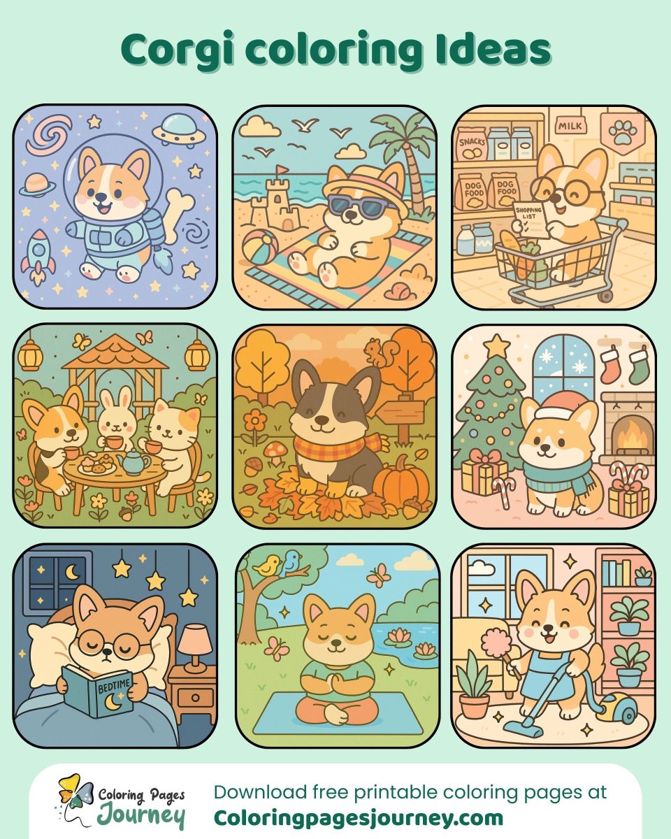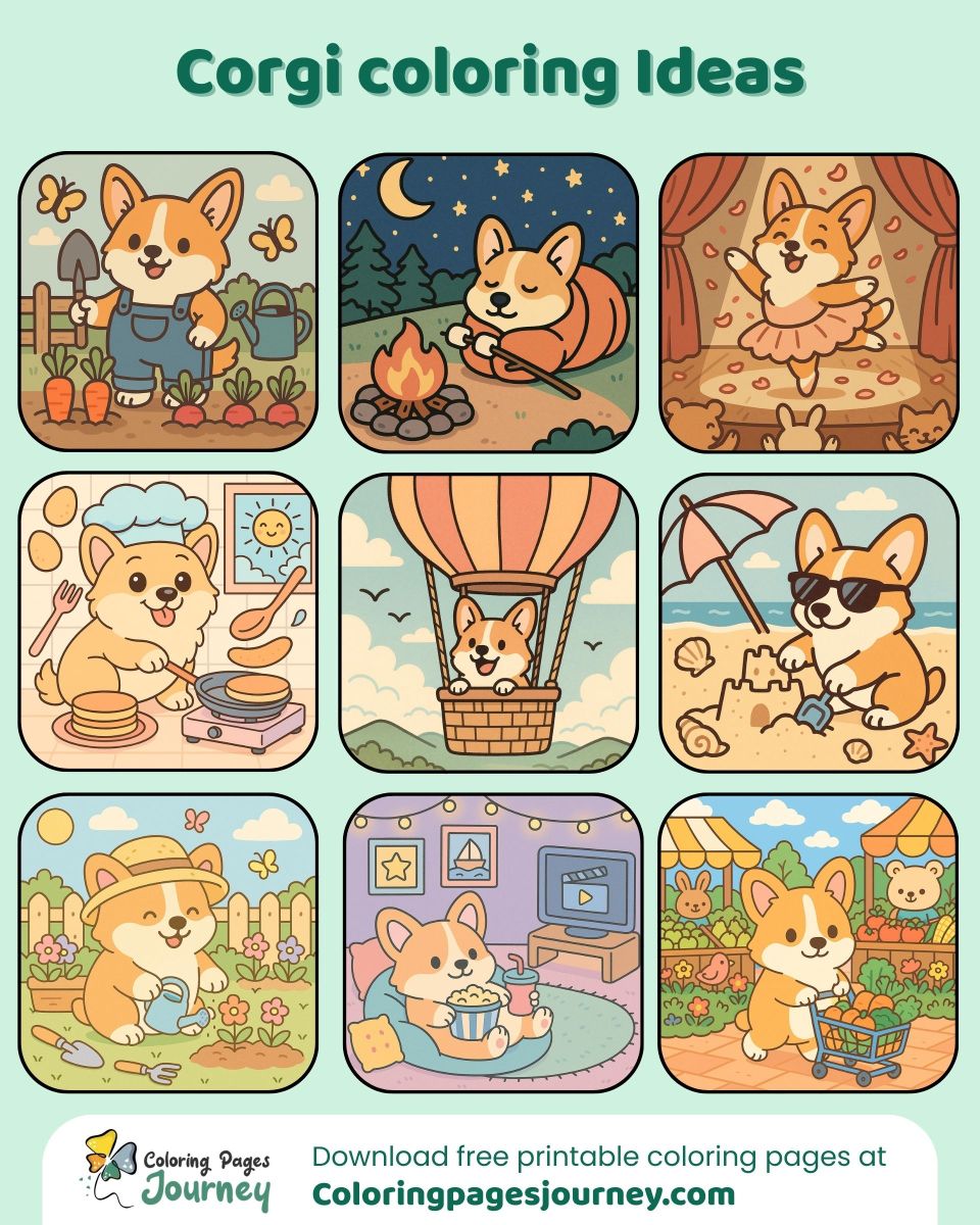 Yes. Every corgi coloring sheet in this collection is free to download from ColoringPagesJourney. You can print them at home, save them to your devices, and share them with friends, family, or students who love corgis.