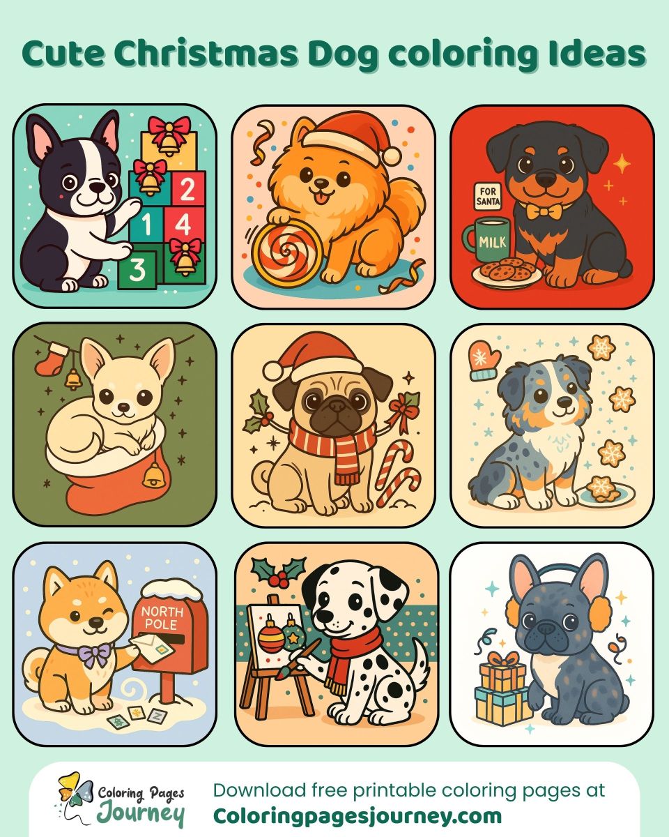 You can find more dog and pet-themed seasonal printables at ColoringPagesJourney, including winter pups, everyday dog scenes, and other friendly animal sets, so you always have fresh illustrations waiting for your next quiet night.