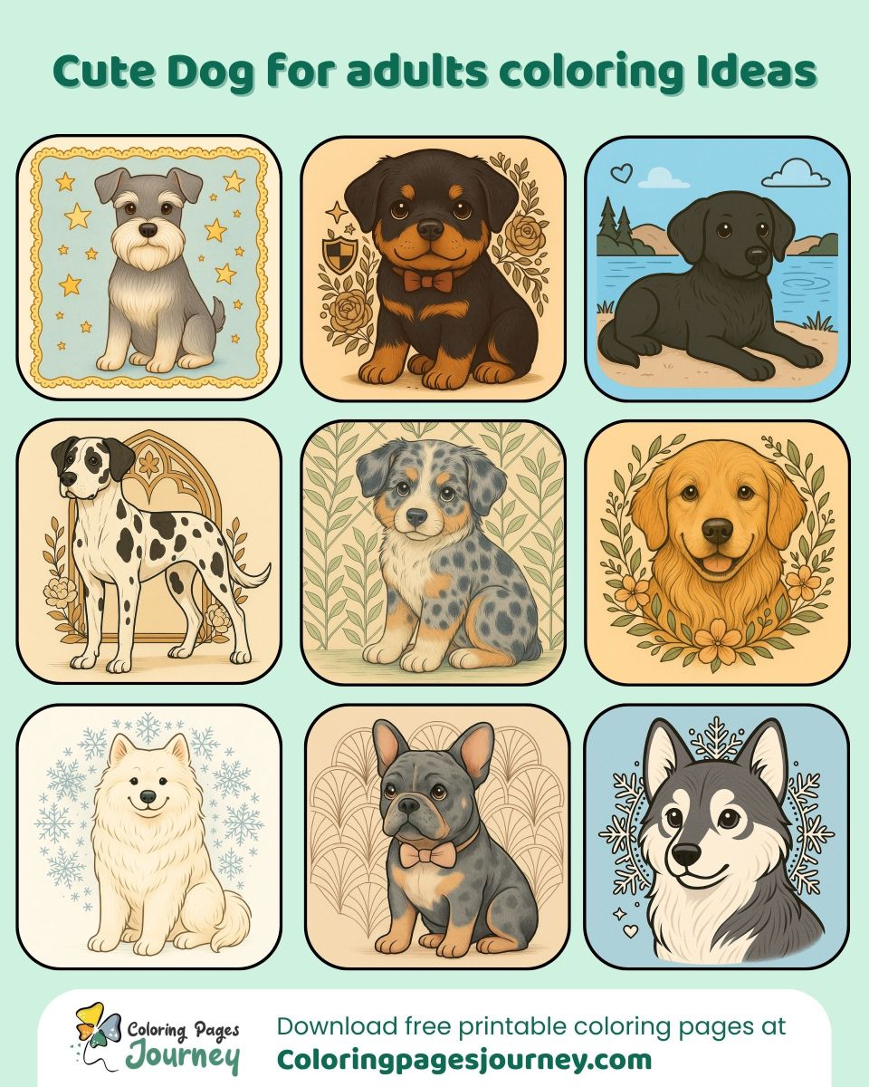 Yes. While the dogs are adorable, the lines, poses, and backgrounds in these adult coloring images of dogs are created with grown-up colorists in mind. You’ll find room for shading, layered fur, and backgrounds like lakes, wreaths, or night skies that feel relaxing rather than childish.