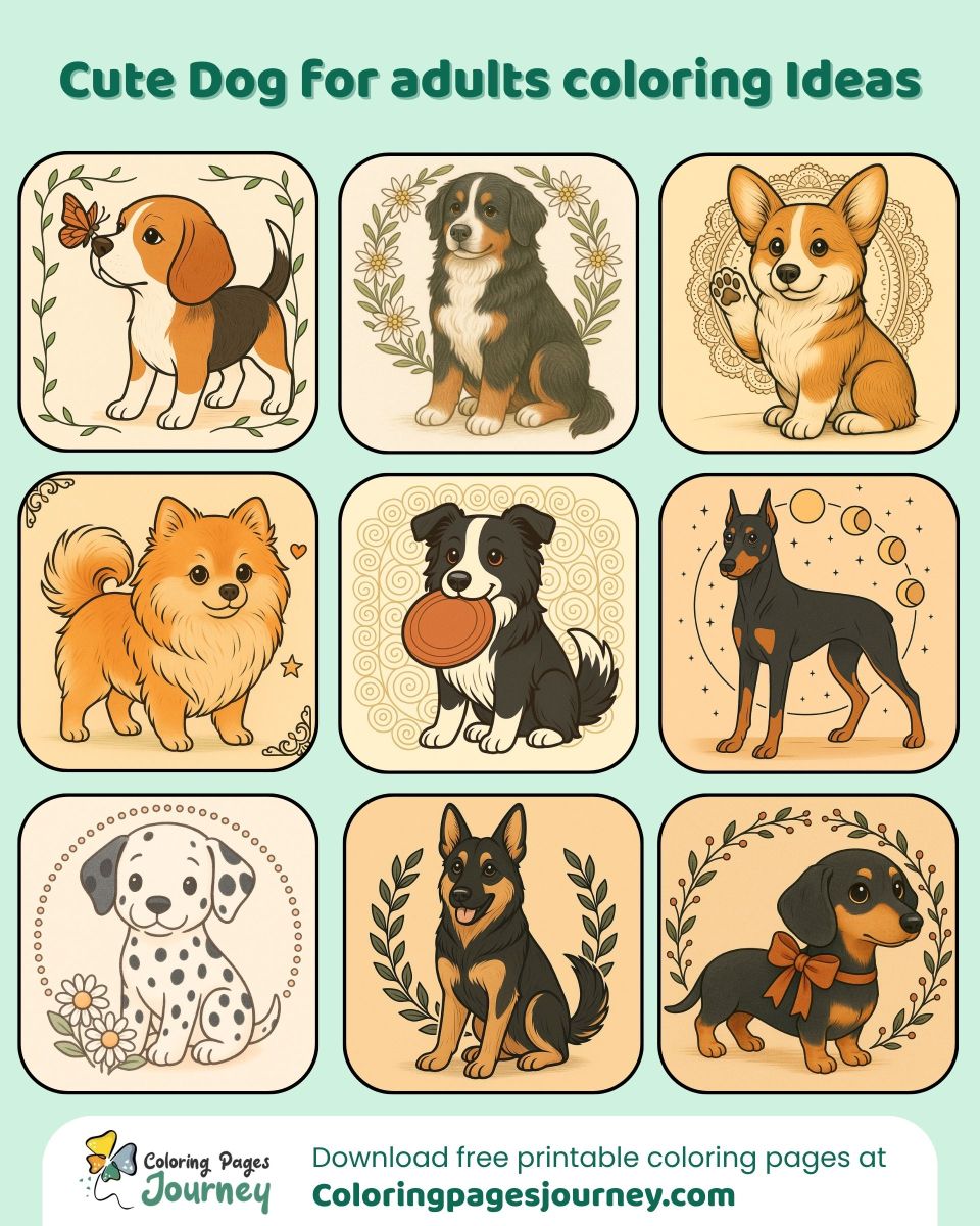 That’s the plan. As new sketches come to life, fresh printable adult dog coloring sheets will be added to the collection. You can always come back to ColoringPagesJourney when you’re ready for new designs and slowly build a personal adult dog coloring book that grows with your style.