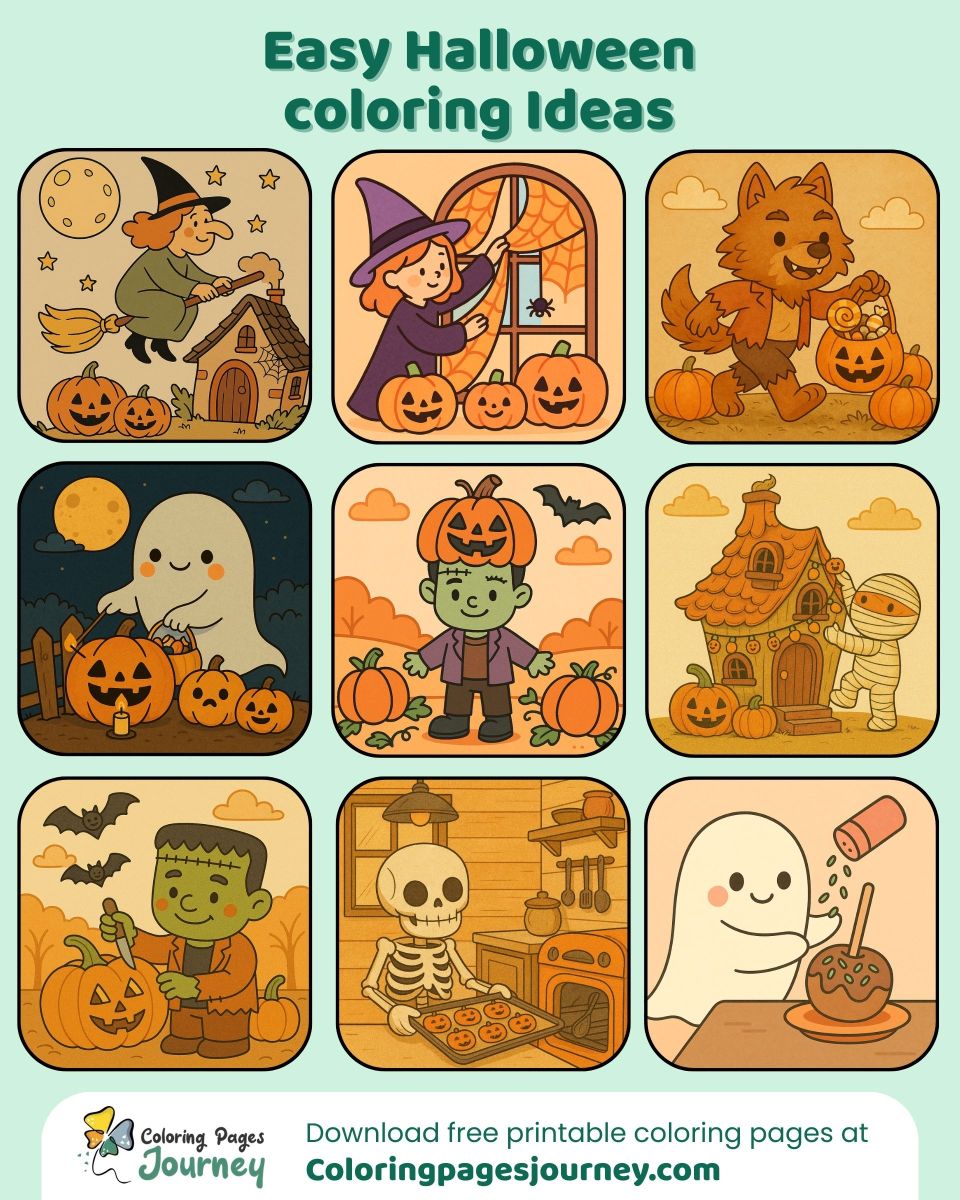 Print one page now at ColoringPagesJourney. These easy Halloween coloring pages aren't just pictures—they’re a five-minute return to yourself and a simple way to share that moment with someone you love. Color it, then stick it on your fridge. It serves as a reminder of what you've finished today, even if everything else is still a mess.
