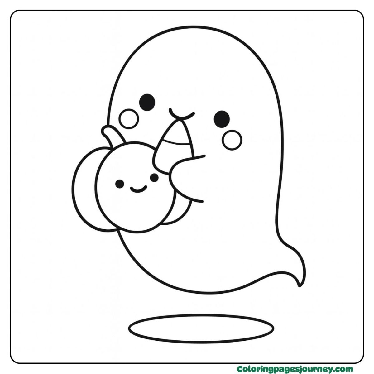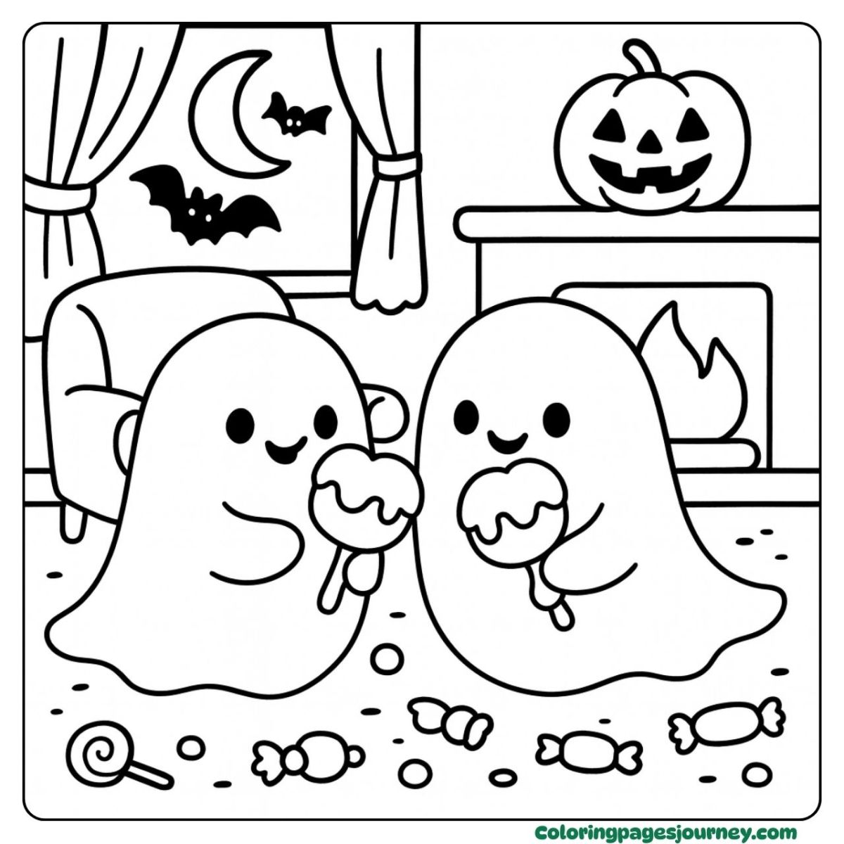 Made this ghost that's looking at a candy bowl like he's too scared to grab some. Drew another with a weird hat on a pumpkin. Got a skinny moon in there too. My neighbor runs story time at the library — says kids actually color these while she reads. Parents text me saying these help when kids don't want to sleep.