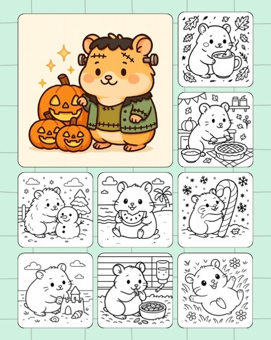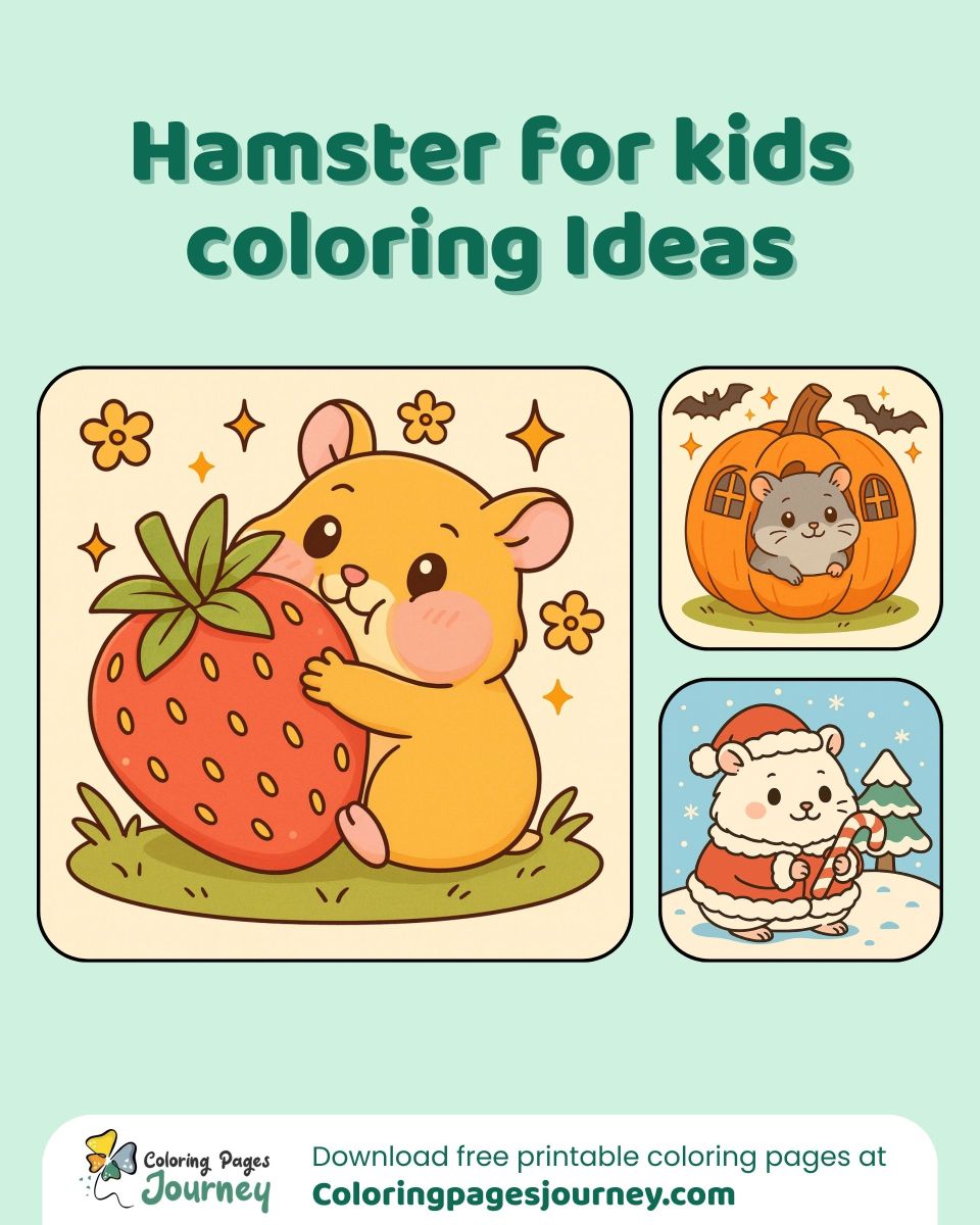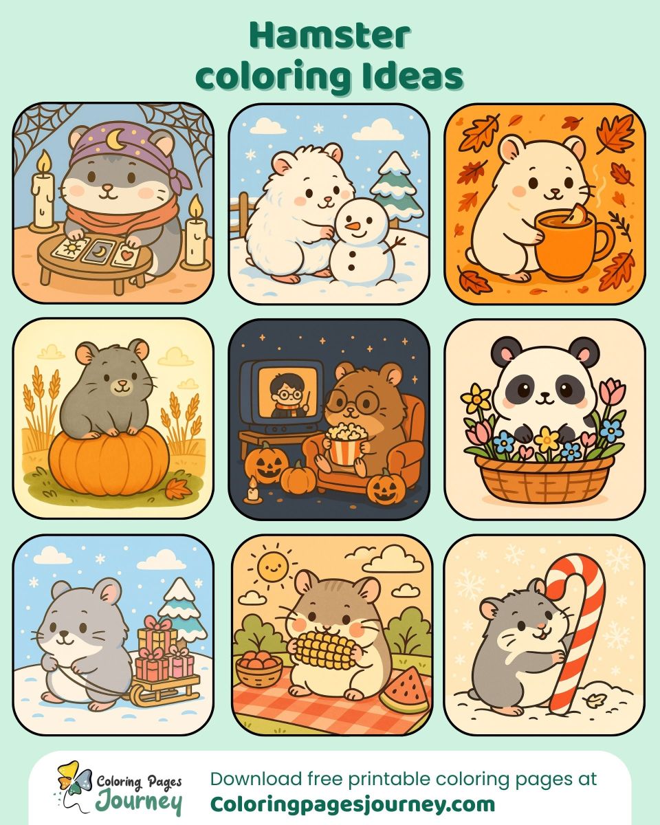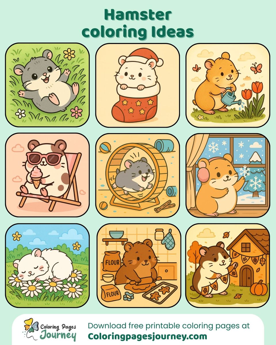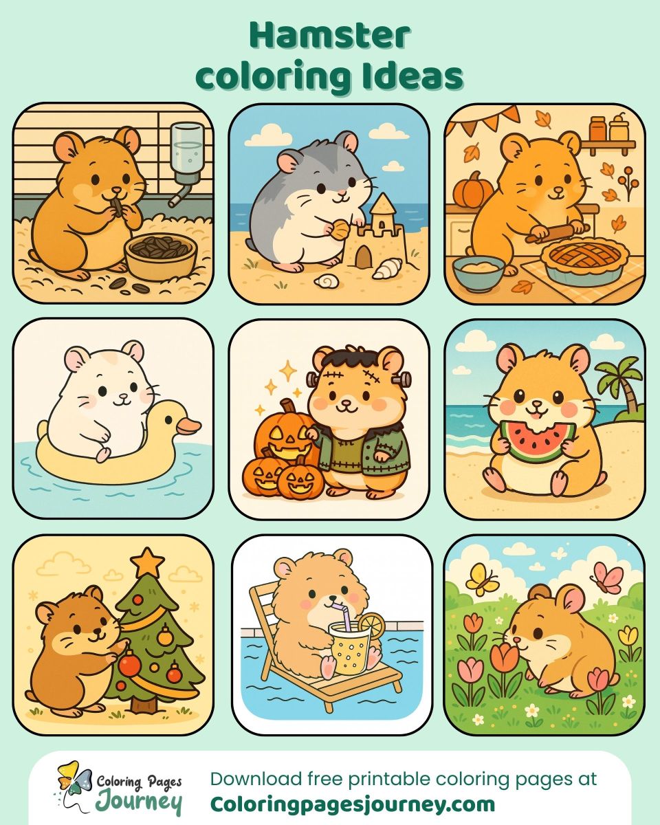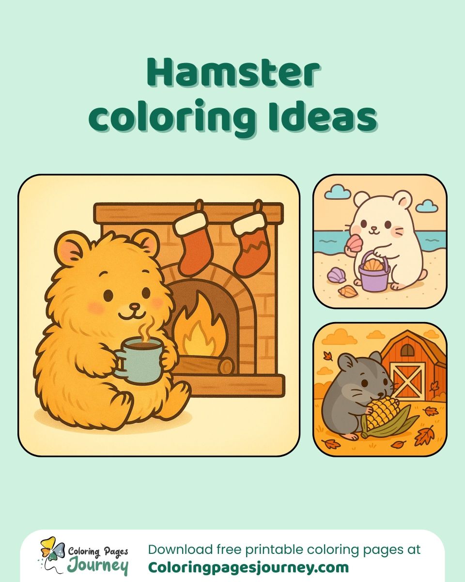 You can explore a full set of hamster coloring PDFs at ColoringPagesJourney. Just visit the site and you’ll see dozens of designs for free.