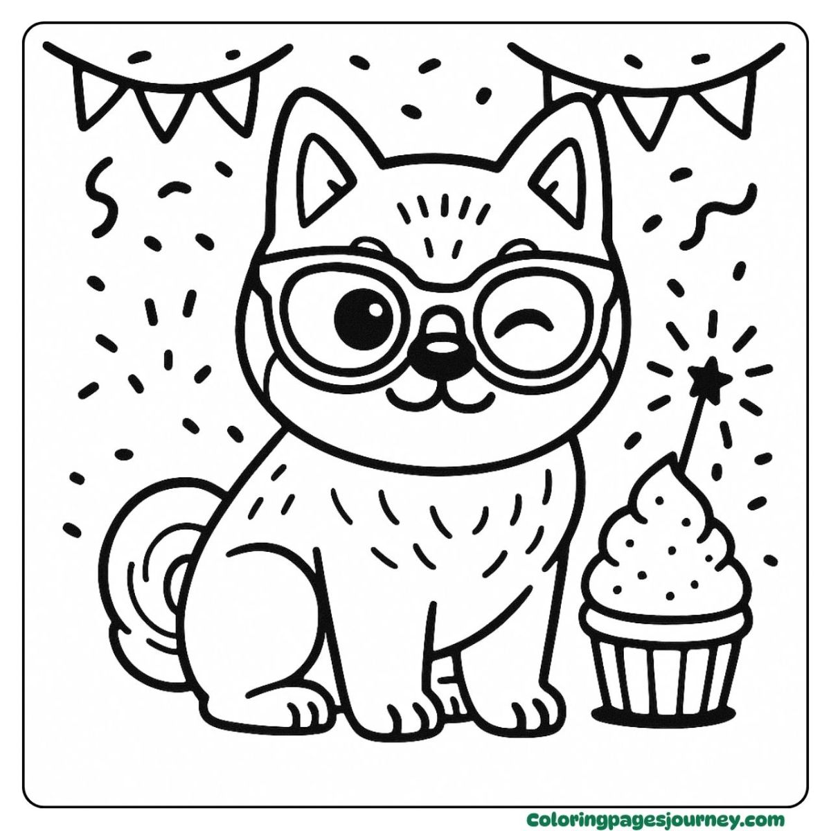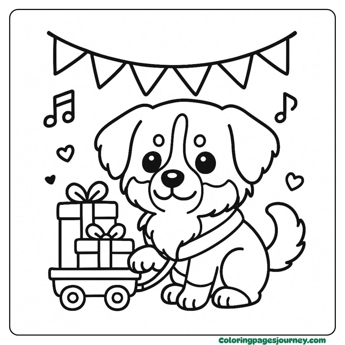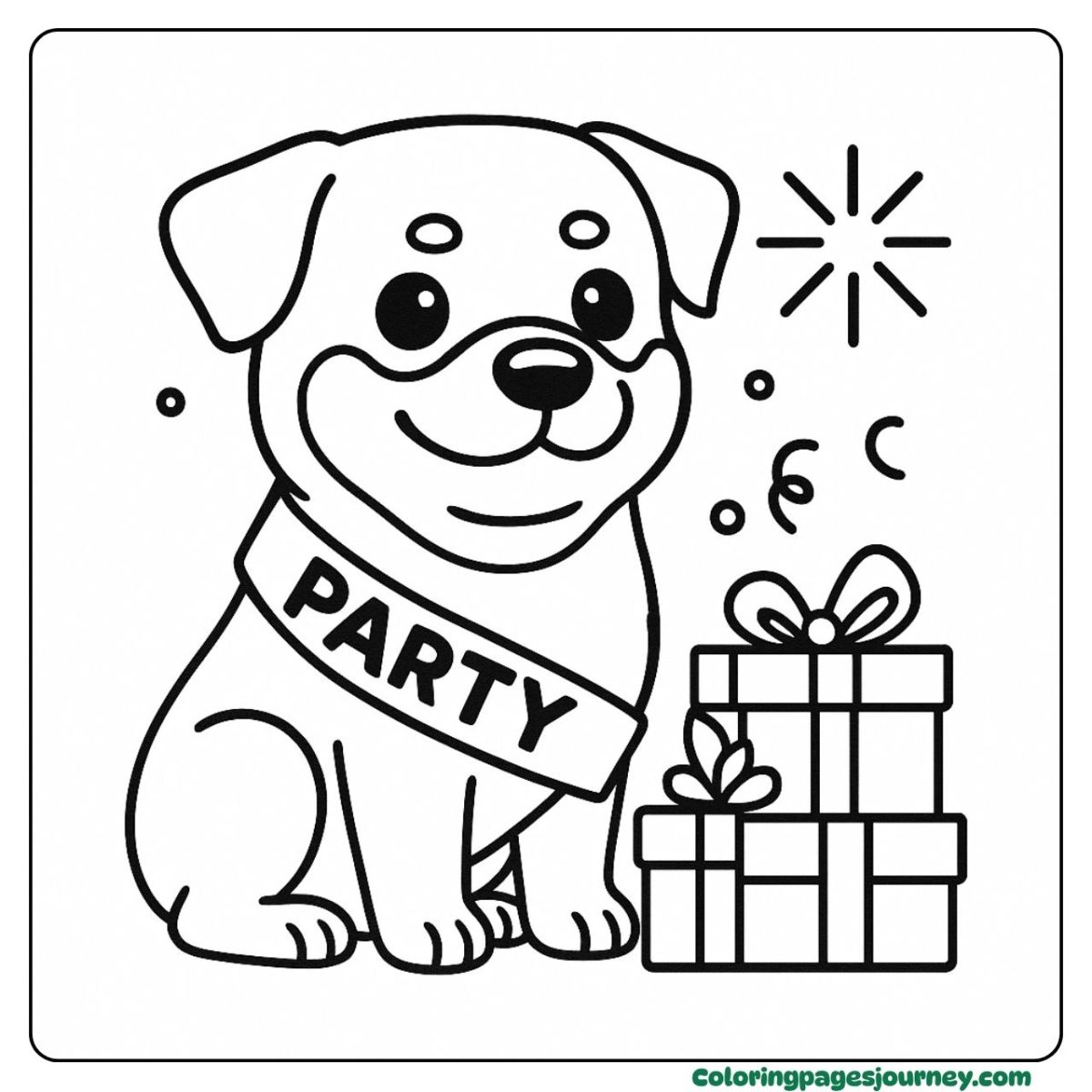 This set of festive coloring sheets of dogs pulls together all the cheerful pups, sweets, banners, balloons, and gifts. Their clean outlines and open spaces make them easy for kids to color and fun for grown-ups to play with shading.