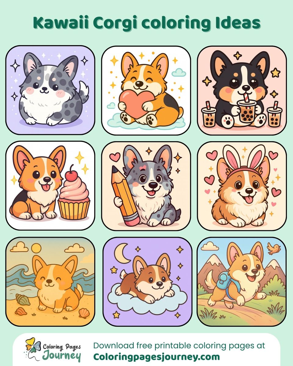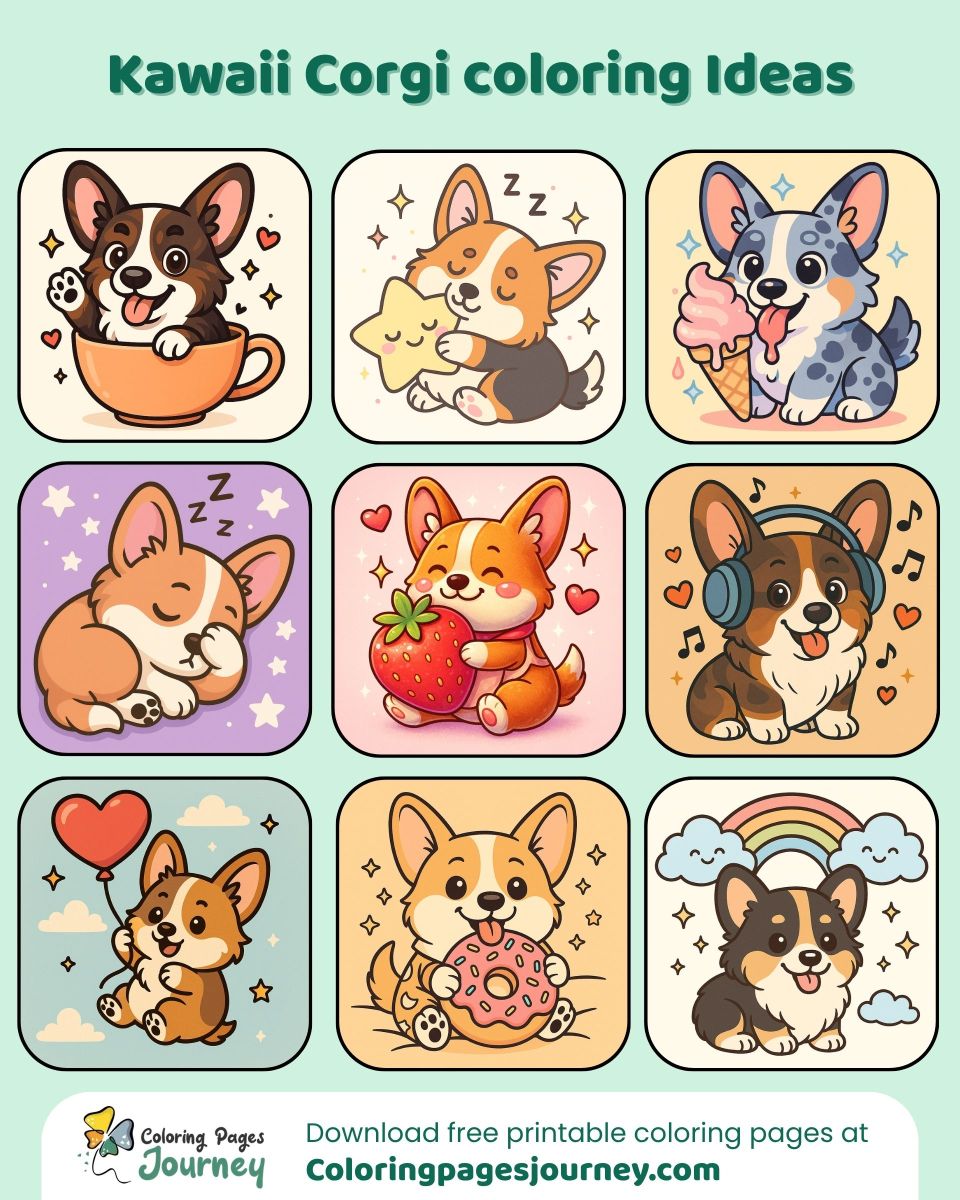 Coloring Ideas for Kawaii Corgi Coloring Pages