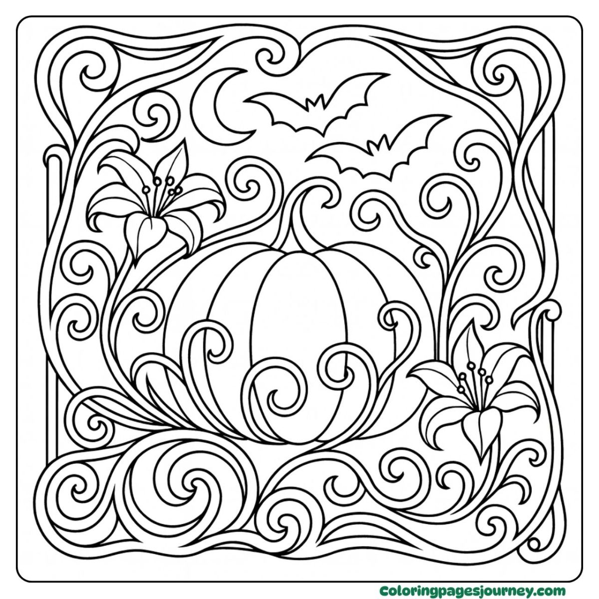This adult pumpkin collection ties to the season and stays a bit challenging. Playful vines wrapping pumpkins, a Gothic-styled night with bats, moons, and lilies, an ancient glass window—all three scenes are in clean outlines, pulling you into careful blending.