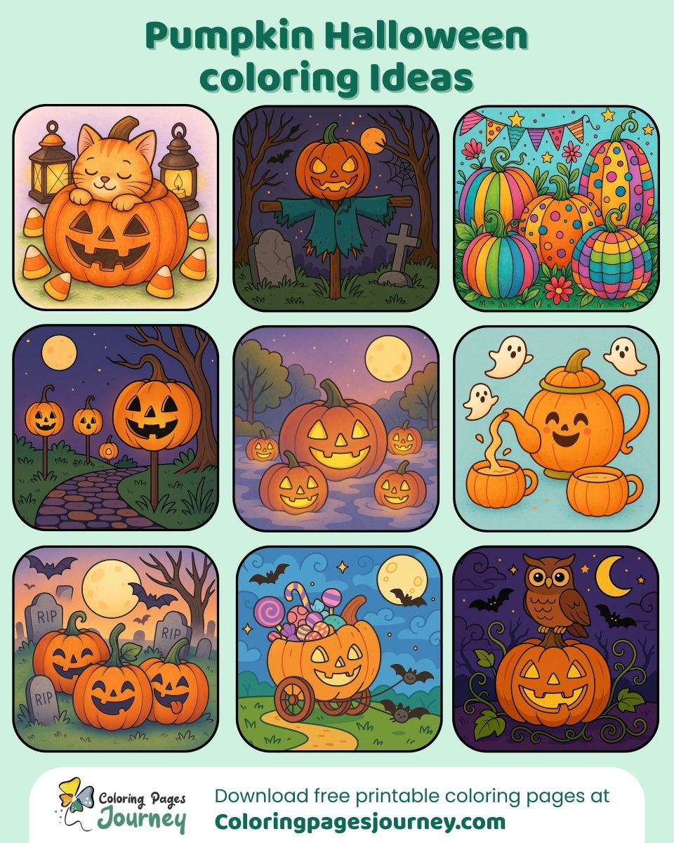 Oh, that cold rush of the fall snatched at you? The streetlights are blinking at some secrets. And you are there, looking at a pile of happy pumpkin Halloween coloring pages that have been dumped on the table, all begging for some crayons and markers. Wicked little jack-o-lantern smiles or cozy garden snapshots. Get the 22 designs totally free — in the format of your choice. Just one sheet? Or the whole bunch? Directly taken from the site ColoringPagesJourney. They print well on everyday paper. Pure fun, zero hassle.