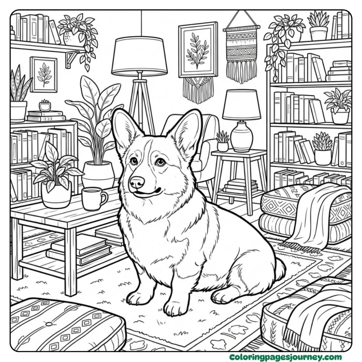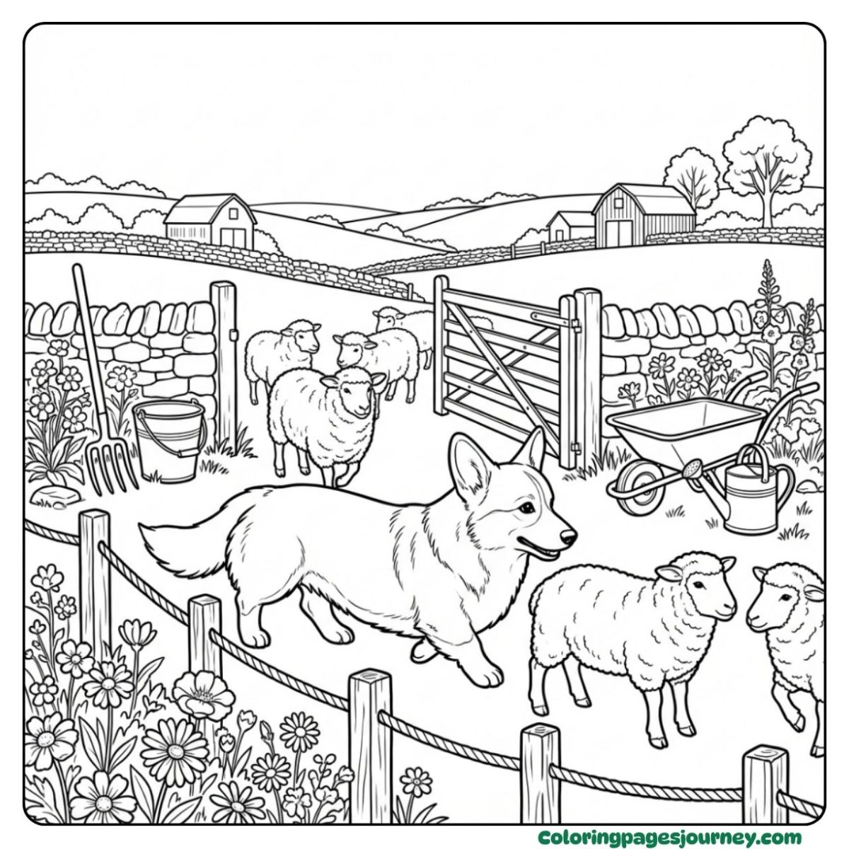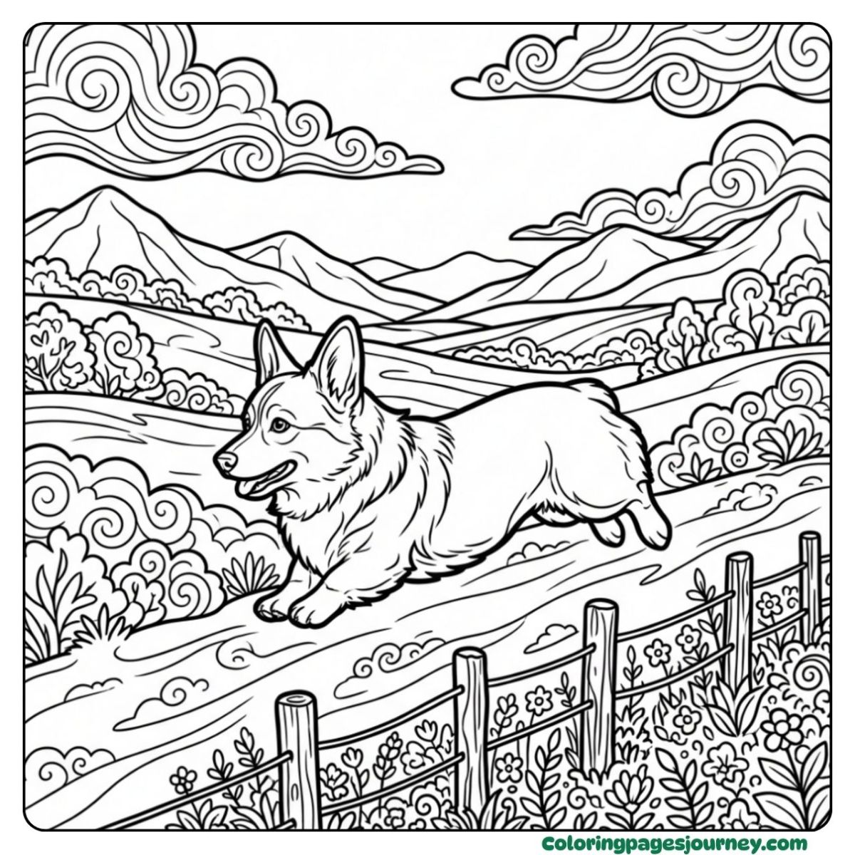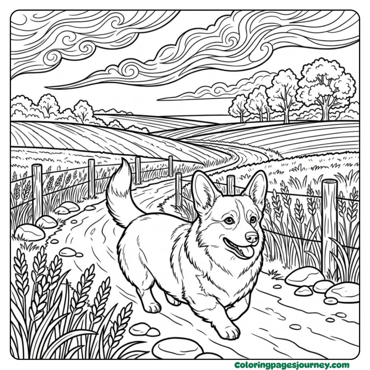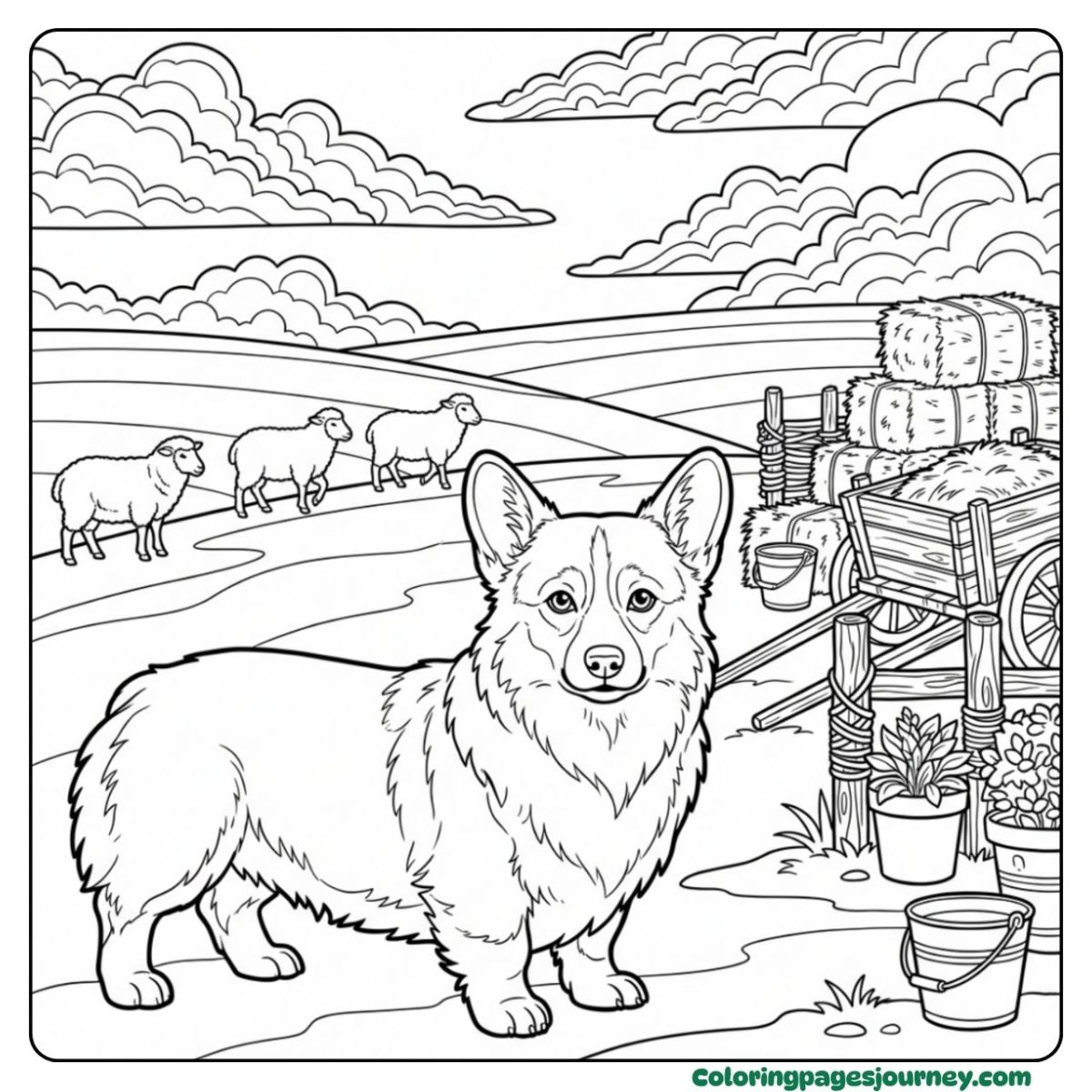 A herding Corgi in the field brings its own focused intensity - crouched low, ears perked, fully in work mode. This Corgi dog coloring page set includes fluffy sheep, wooden fences, and rolling hills, leaving space to shade the wool in soft grays while keeping the dog’s markings bold and defined. And if you’re an adult who feels constantly swamped by work, think of it as a stress-relief break for grown-ups that fits neatly between meetings and dinner prep.