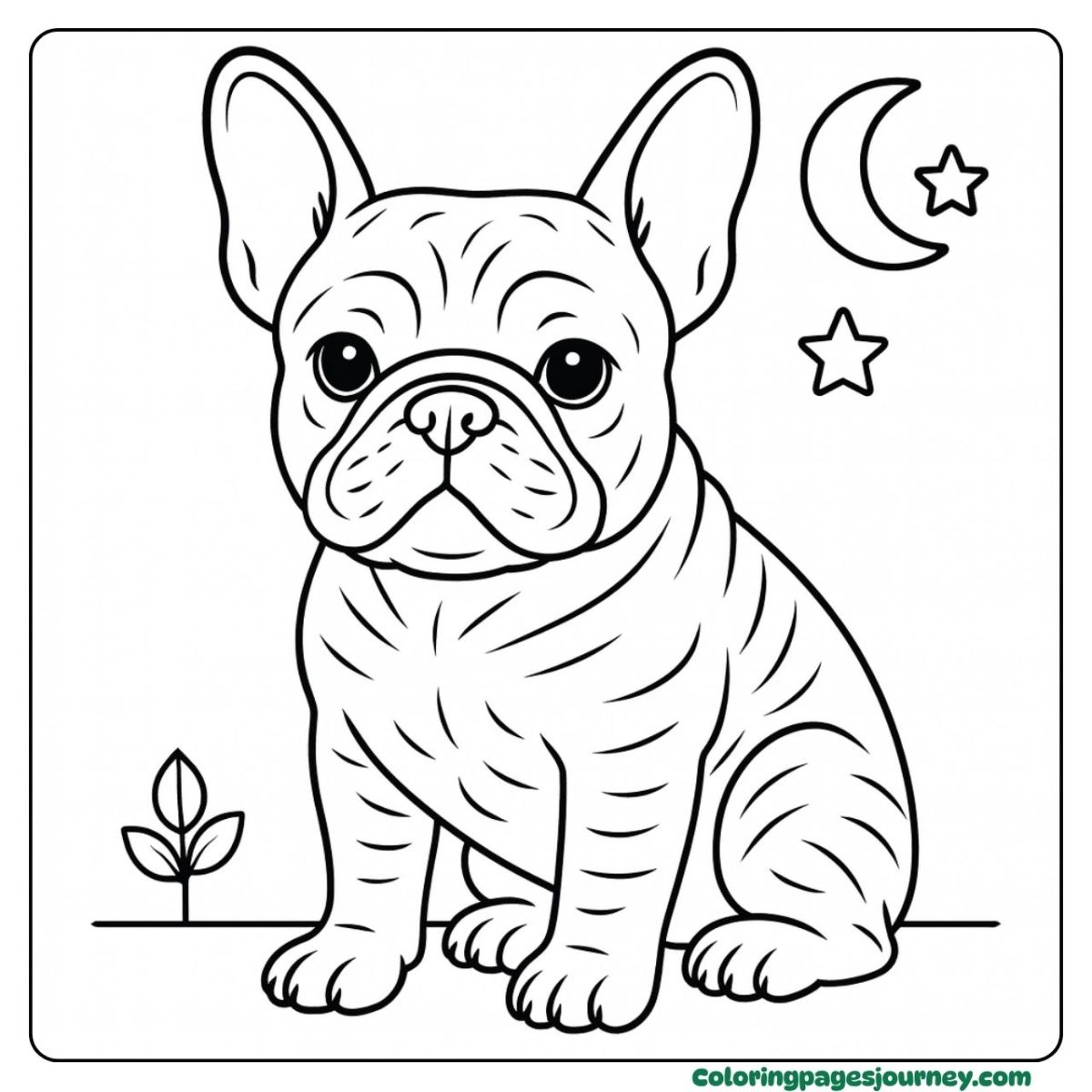 Give the Frenchie cool slate blue and gray fur, then shade wrinkles just deep enough to highlight the light of a cream moon and scattered lemon-yellow stars. It feels like a quiet walk after dinner, doesn’t it?