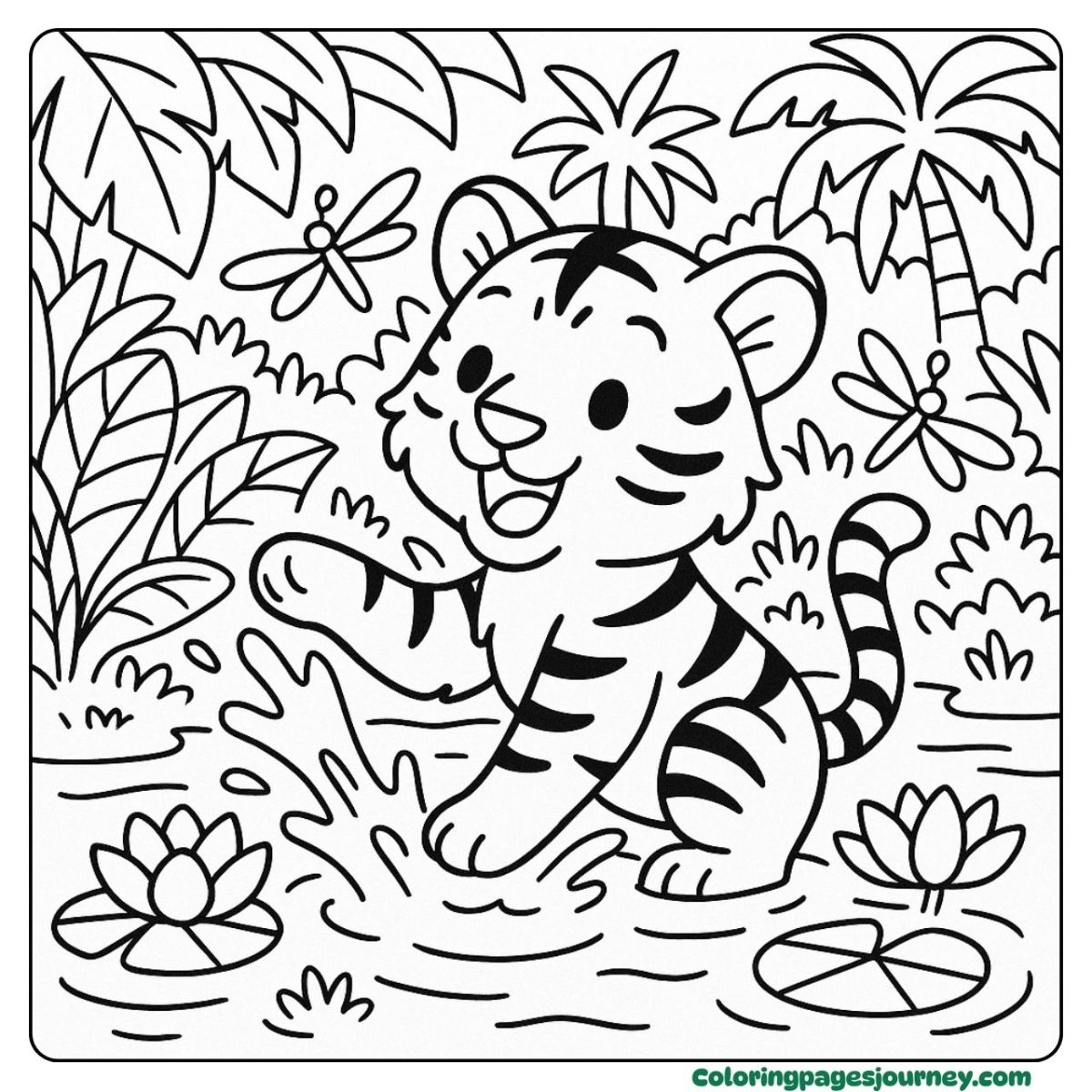 - Tiger Splashing in Pond — White arcs jump from paws while ripples widen across water.