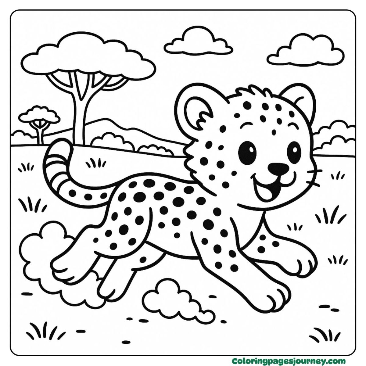 - Cheetah Running on Plain — Dust trails behind feet while two soft clouds drift above.