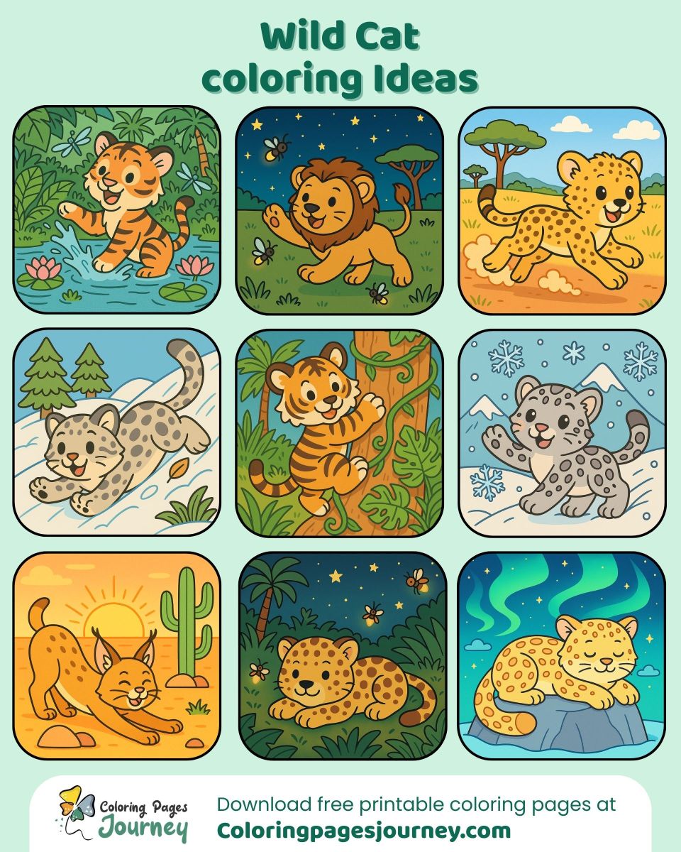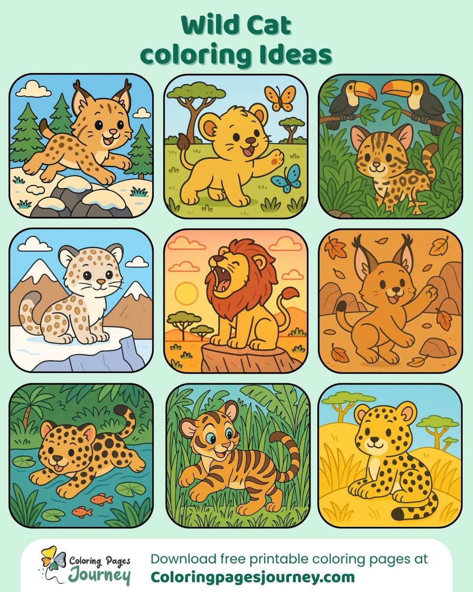 Short windows still build focus, control, and neat work. Keep sessions compact; anchor each scene with one crisp detail so kids see the story. Midway through, pull the Free Wild Cat Coloring Pages mini pack for on-the-fly reprints—no hunting through folders. Want more ideas?